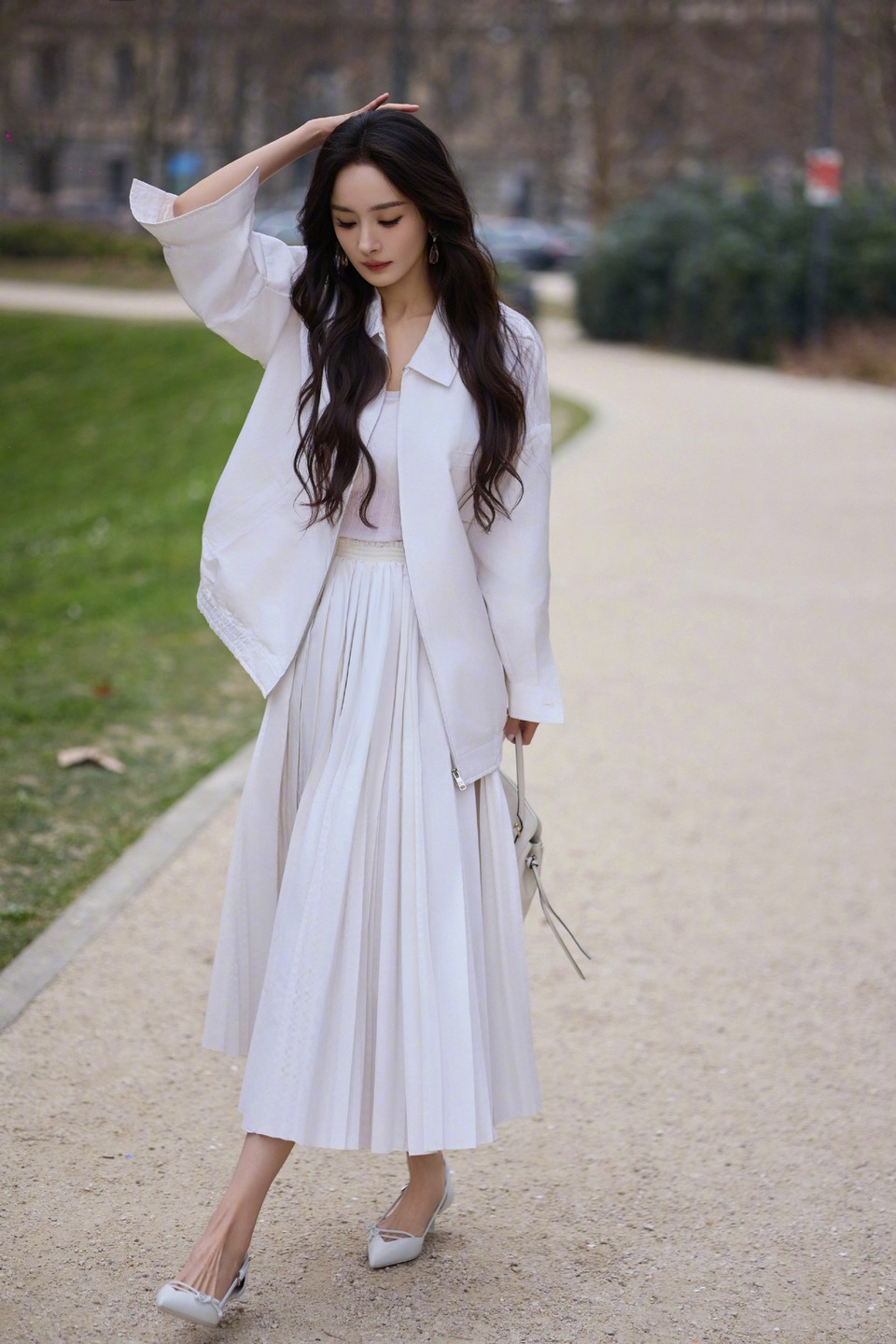 杨幂街角转弯惬意自在 择一日晴空把脚步交给米兰