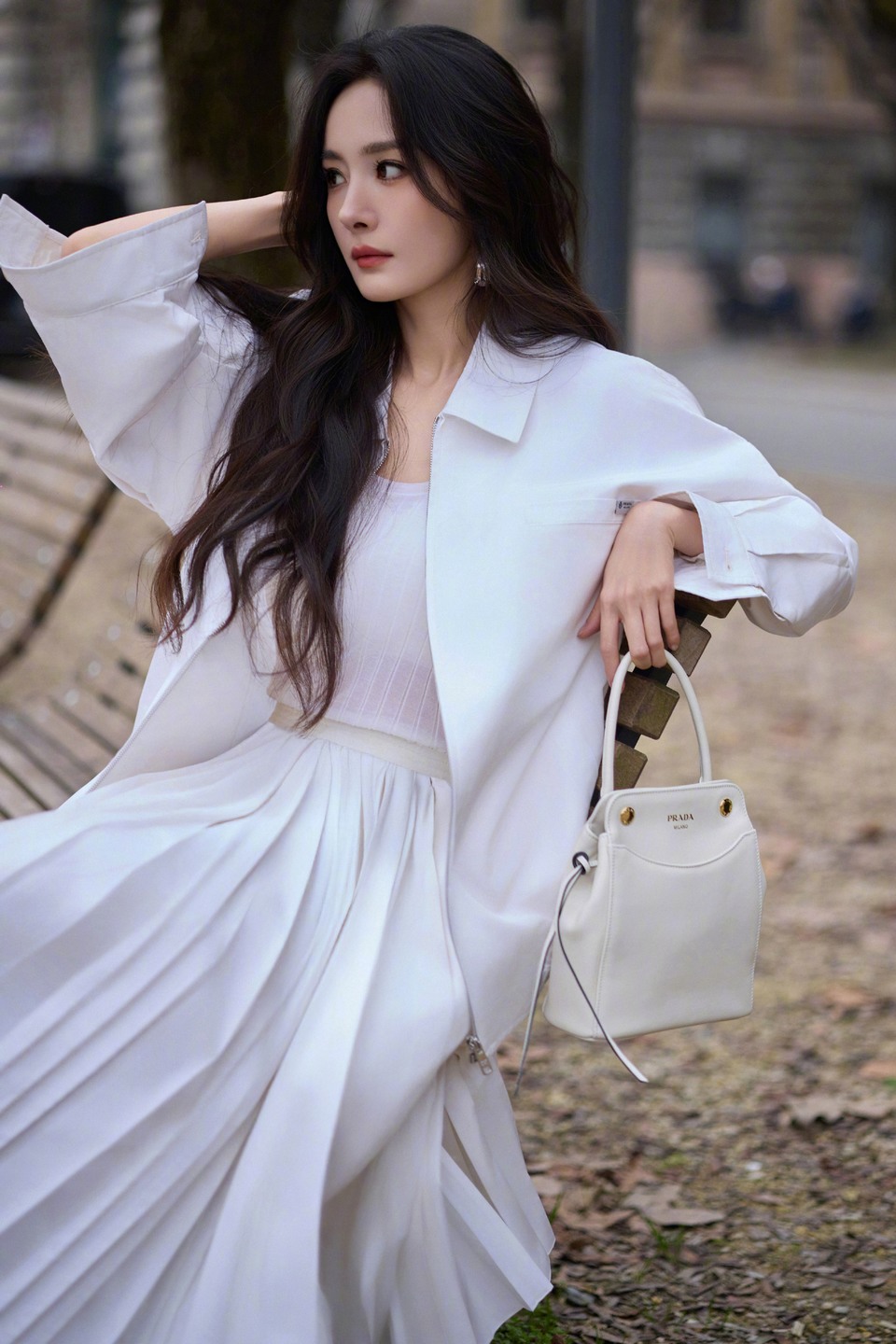 杨幂街角转弯惬意自在 择一日晴空把脚步交给米兰