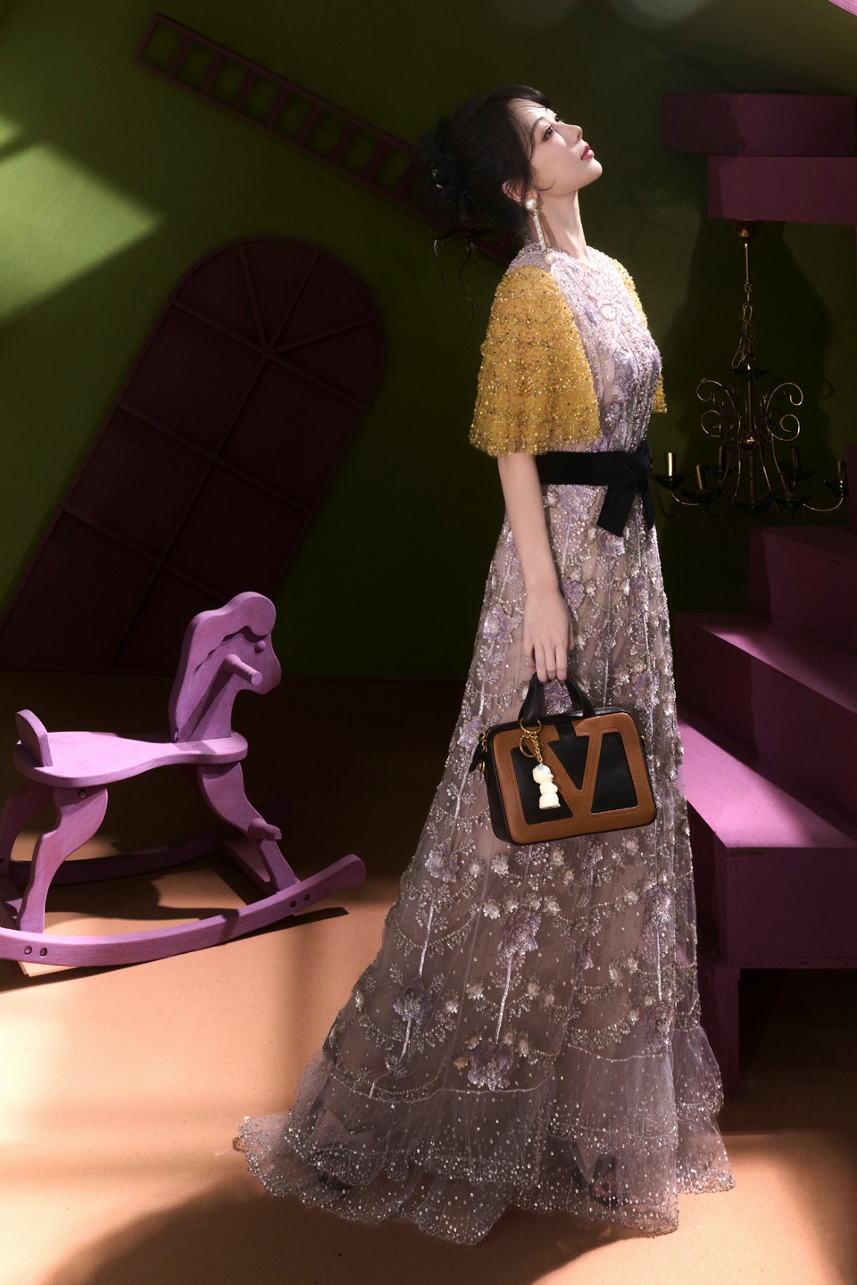杨紫色彩重叠构建鲜活意境 光晕与发丝为伴装载缤纷思绪