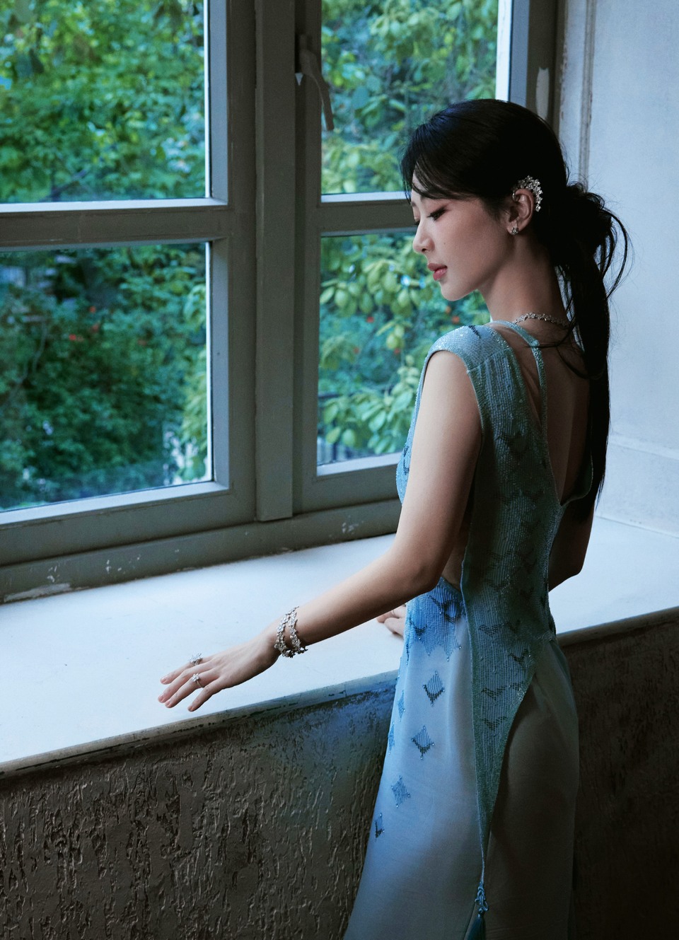 杨紫剪一湾水蓝作裙摆 星光相伴带着温润的纯净