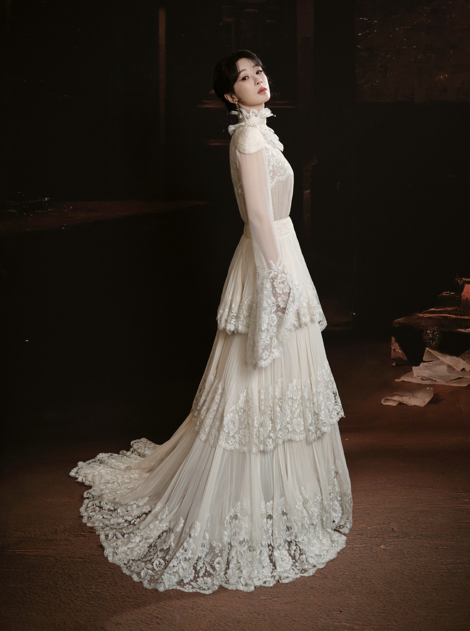 赵丽颖沿轮廓描画釉色