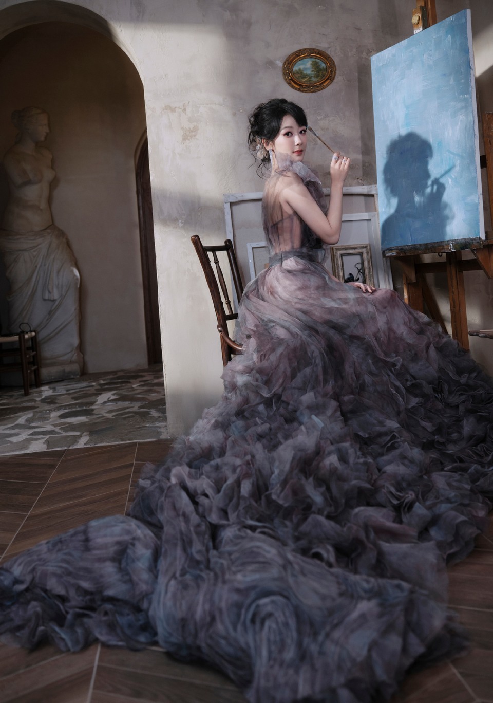 杨紫裙摆里氤氲着未干的油彩 层叠褶皱是暮色流动的温柔
