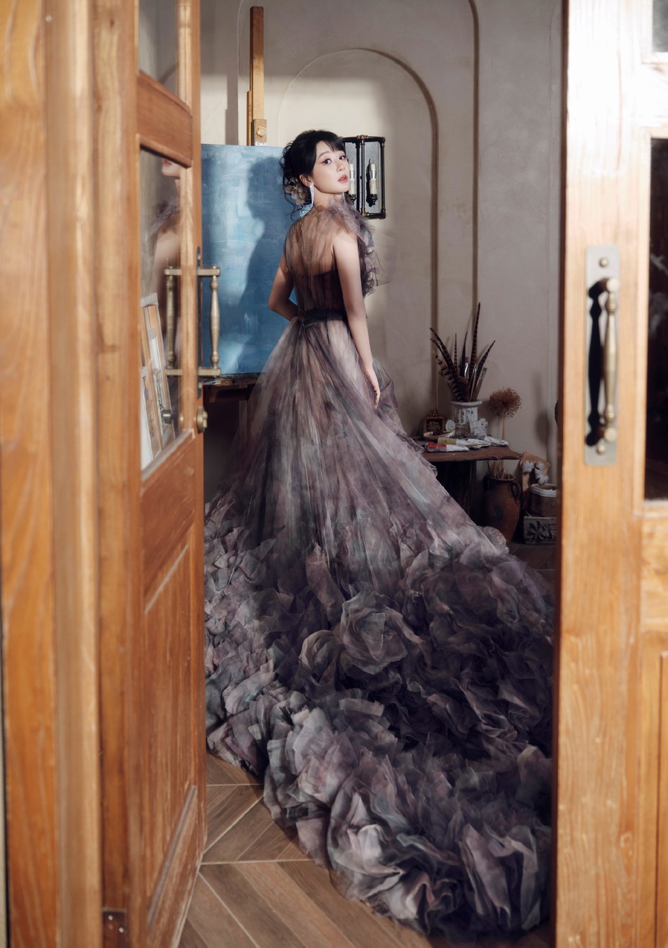 杨紫裙摆里氤氲着未干的油彩 层叠褶皱是暮色流动的温柔