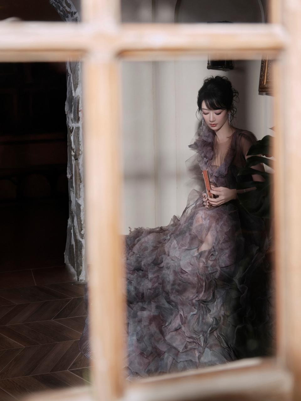 杨紫裙摆里氤氲着未干的油彩 层叠褶皱是暮色流动的温柔