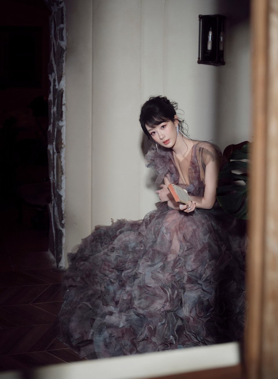 杨紫裙摆里氤氲着未干的油彩 层叠褶皱是暮色流动的温柔