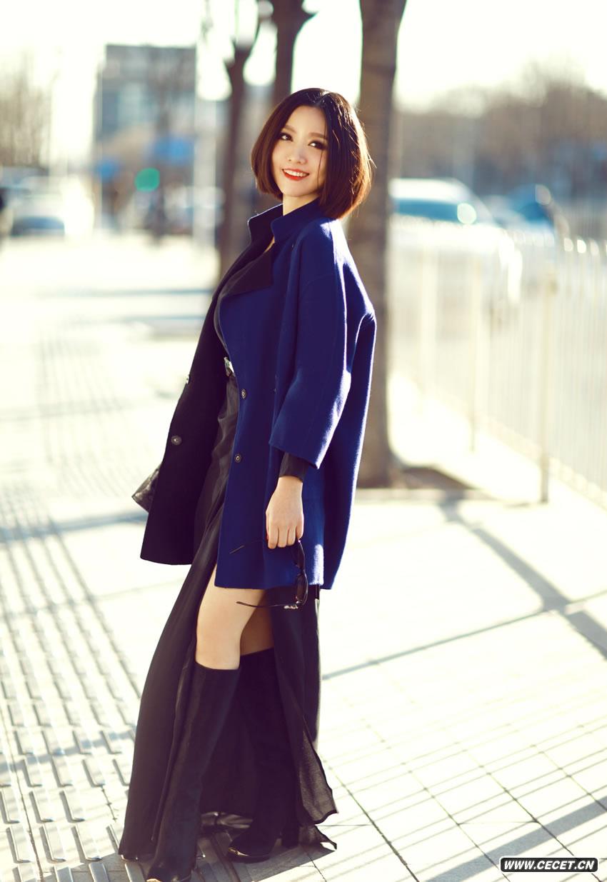 姚贝娜春日街拍曝光 亮色大衣展露女人潮范