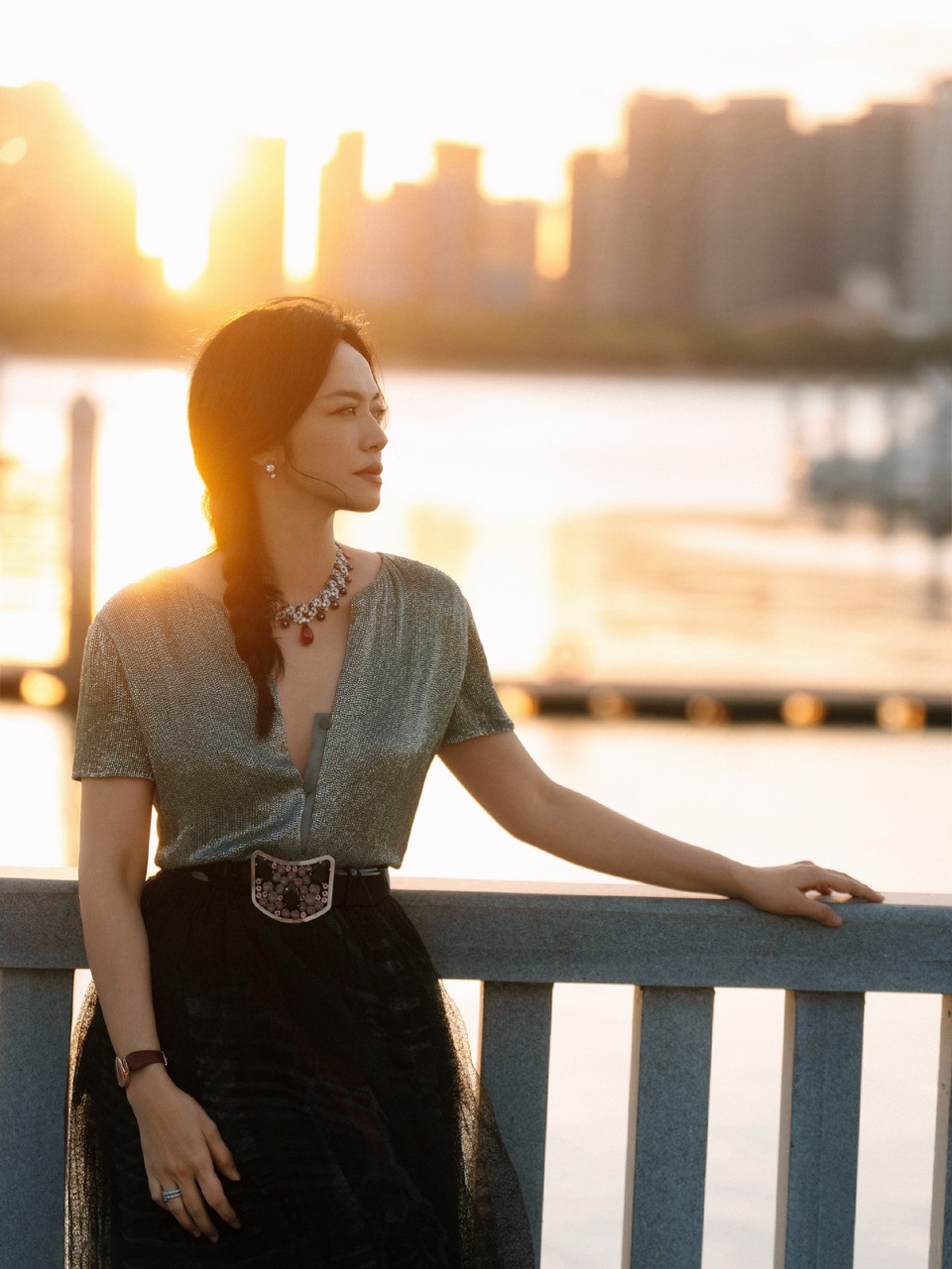 姚晨水波荡漾起金色涟漪 熠熠夕阳勾勒松弛气场