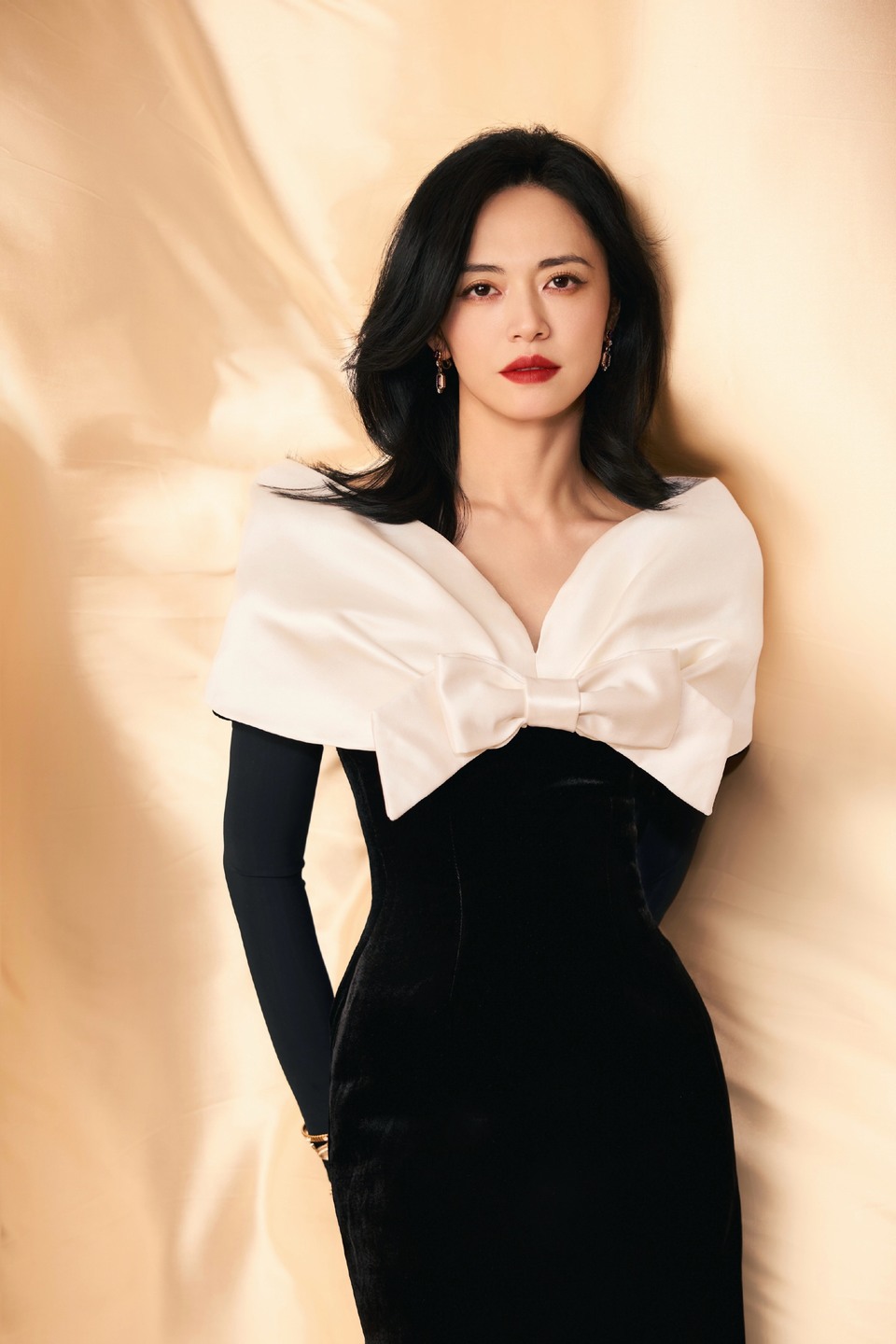 姚晨粉缎如霞衬出黑白隽永 礼裙飘逸于绮丽的粉雾中