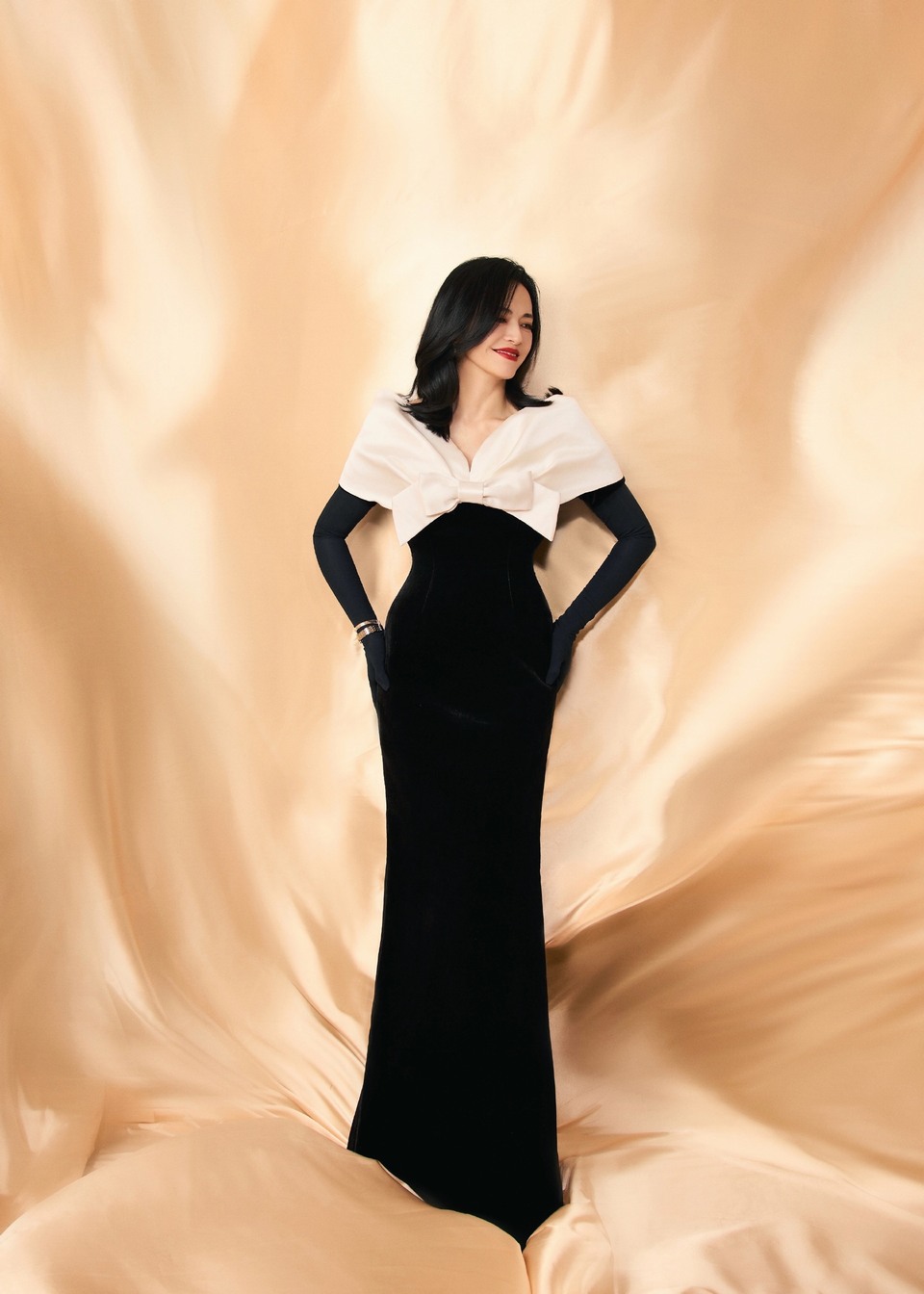姚晨粉缎如霞衬出黑白隽永 礼裙飘逸于绮丽的粉雾中