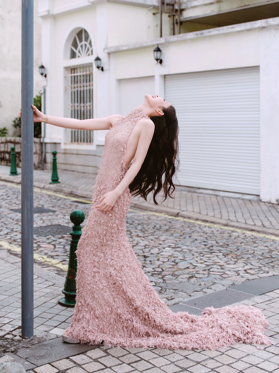 吴倩分享东湖落日下的长发美倩