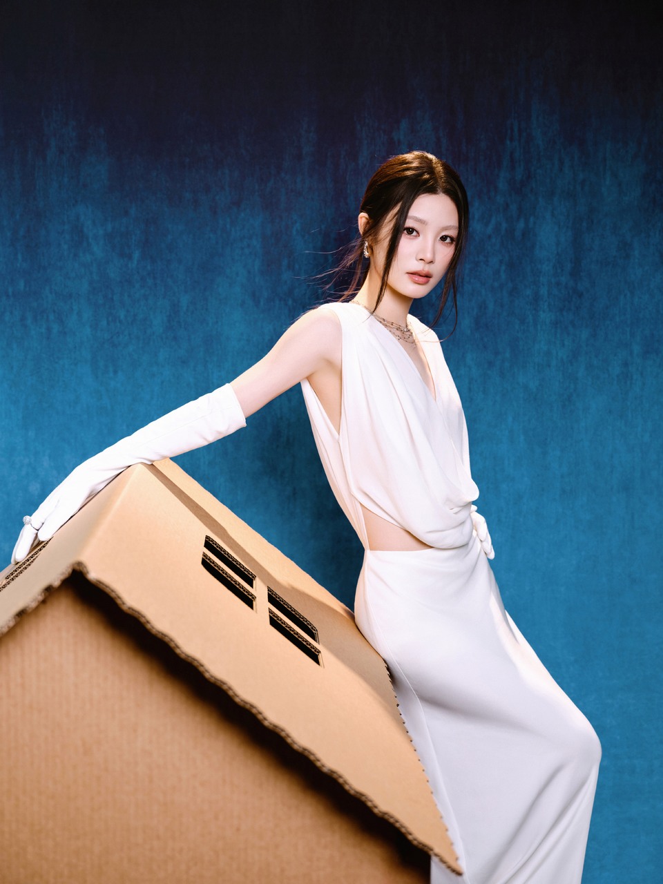 孟佳凌厉剪裁纯白造型