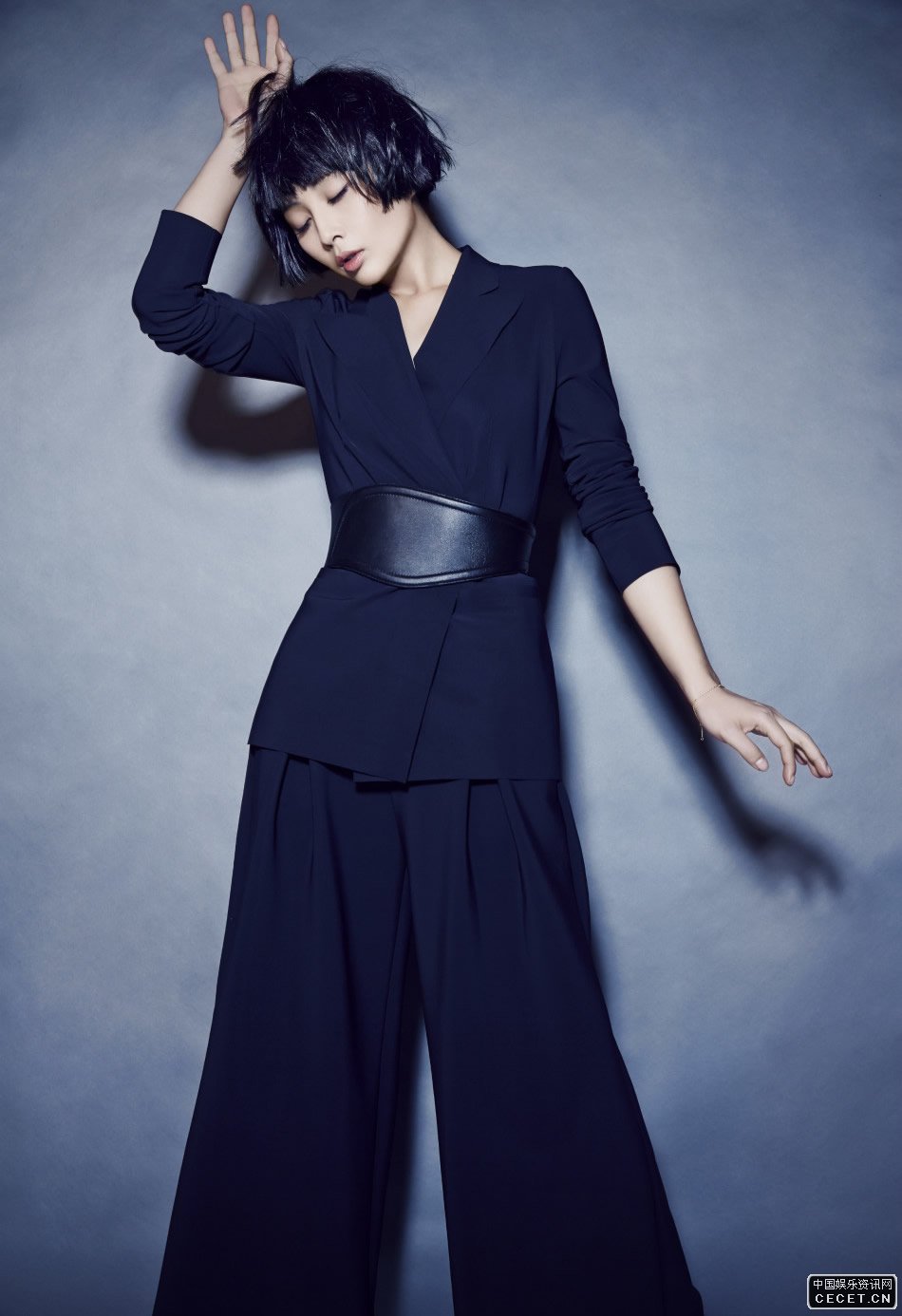 殷桃黑色西服时尚写真 将身材曲线完美凸显