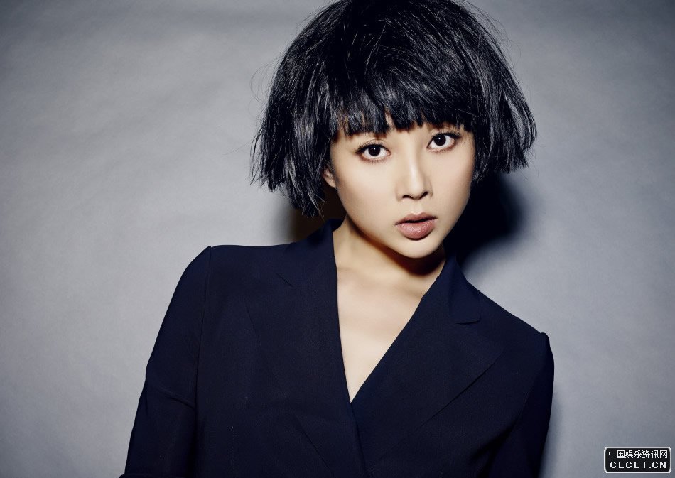 殷桃黑色西服时尚写真 将身材曲线完美凸显