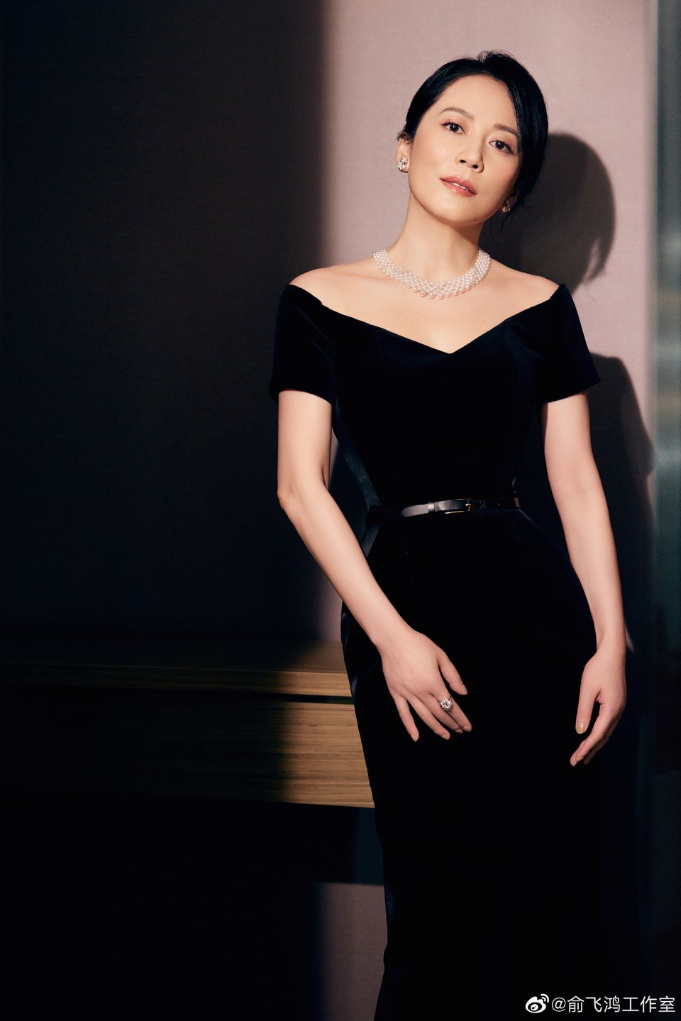 俞飞鸿绸缎黑色长裙美照 光影之间落落大方