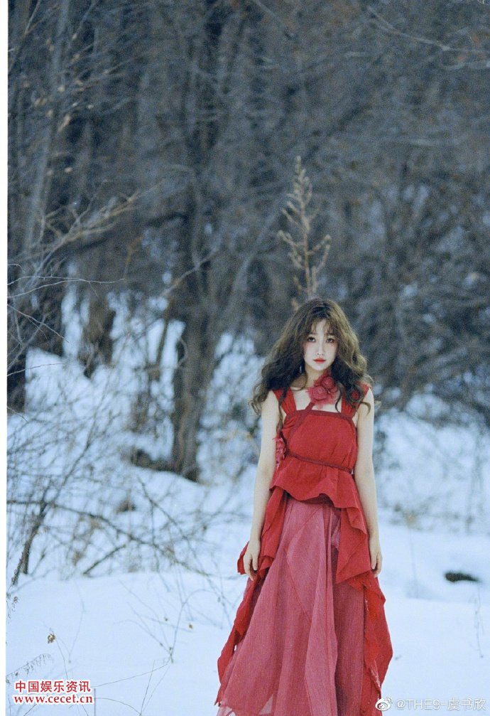 虞书欣红色连衣裙在雪地中随风摇曳楚楚动人