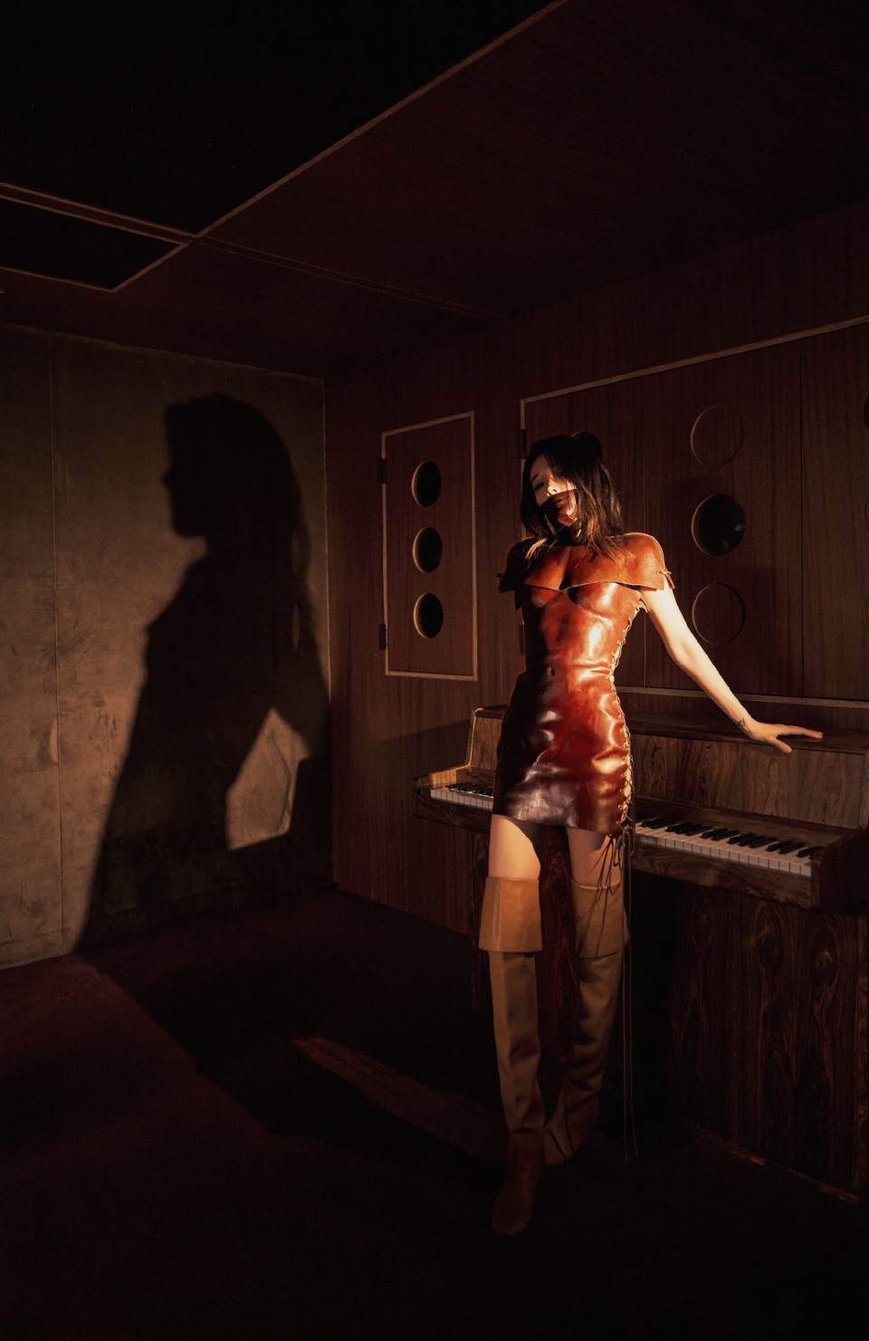 喻言在摩卡雕塑般的皮革盔甲下 定格每一帧的时尚触感