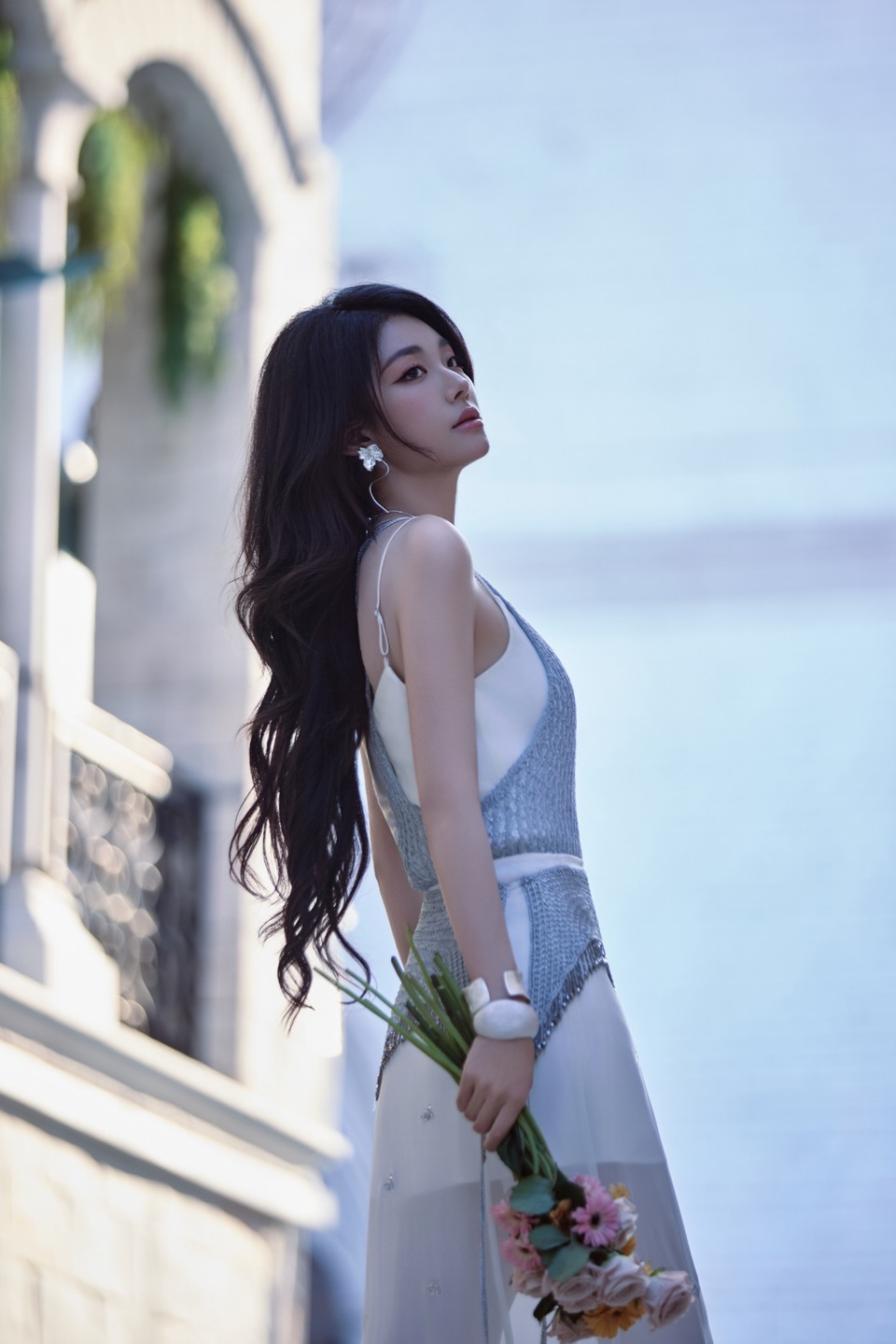 杨紫裙摆飘逸驻足凝望