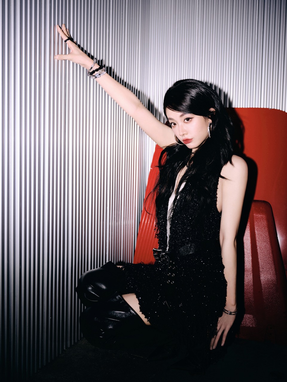 于文文黑裙垂落似银河倾泻