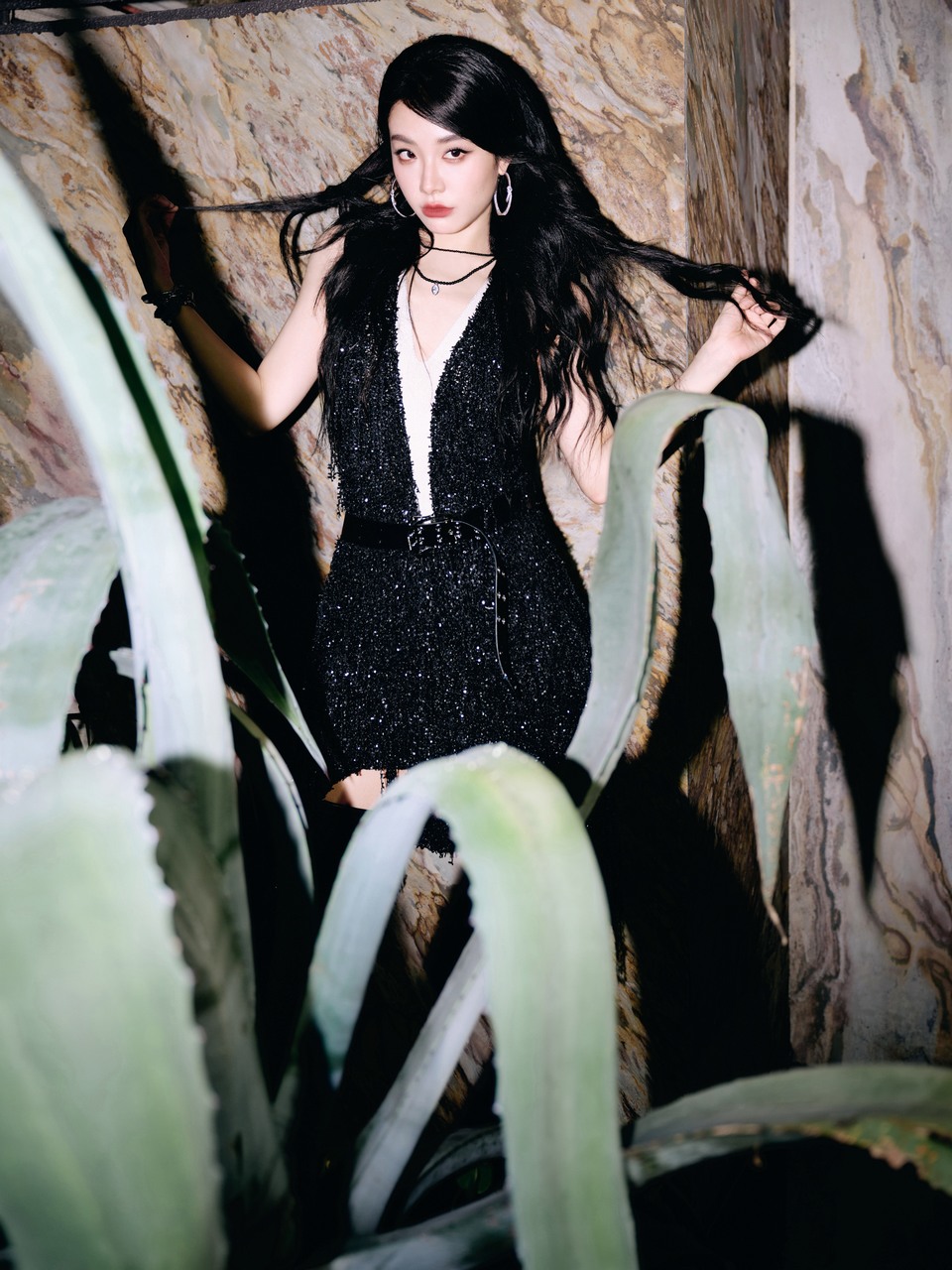 于文文黑裙垂落似银河倾泻