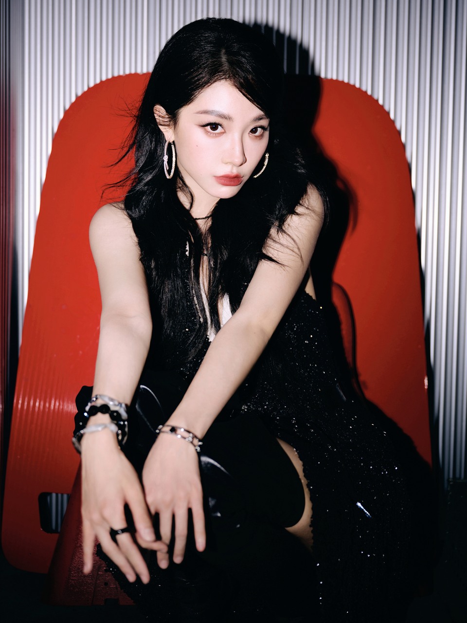 于文文黑裙垂落似银河倾泻