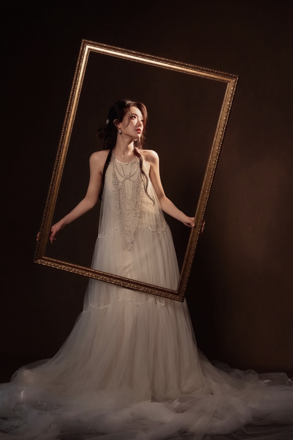 于文文黑裙垂落似银河倾泻