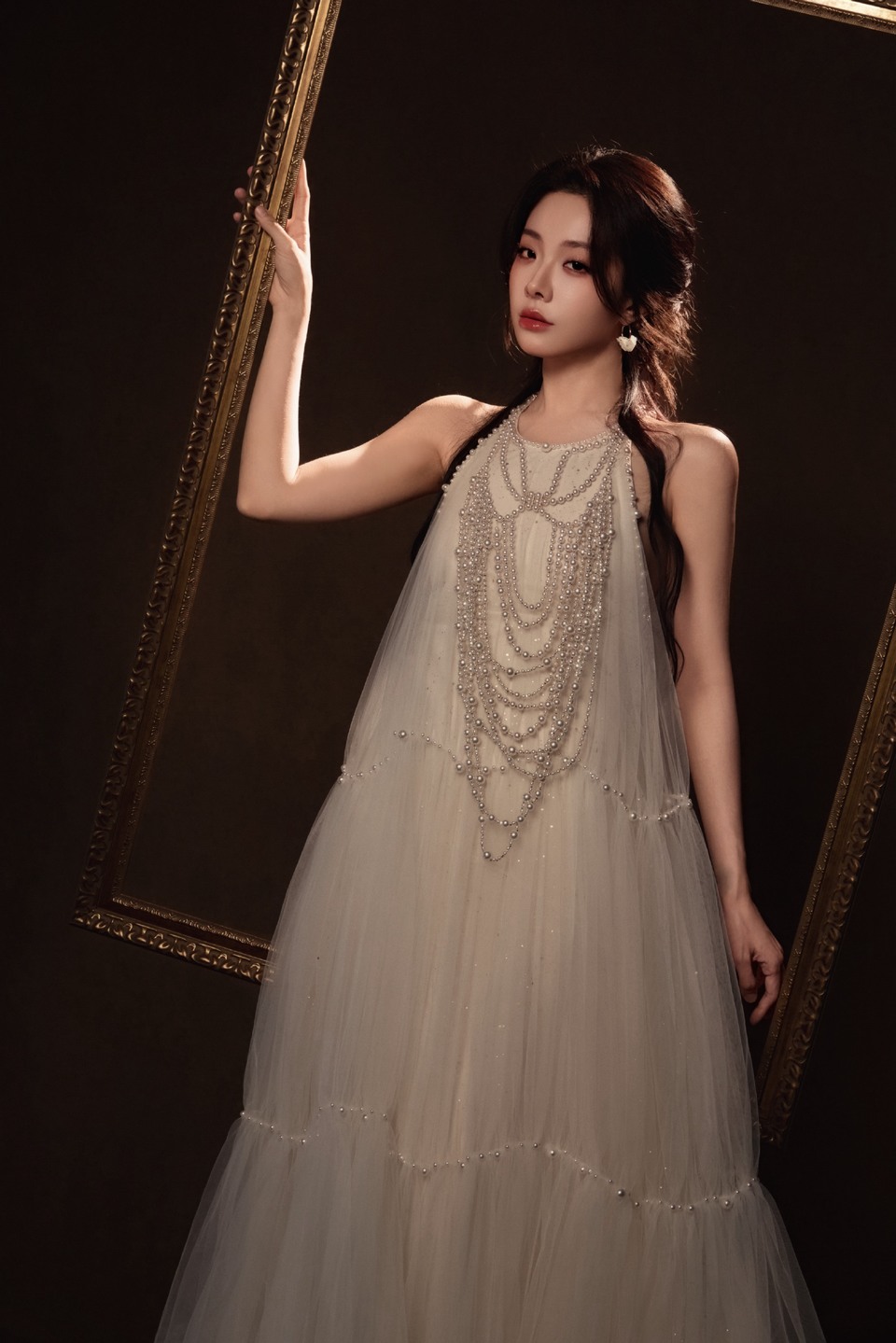 于文文黑裙垂落似银河倾泻