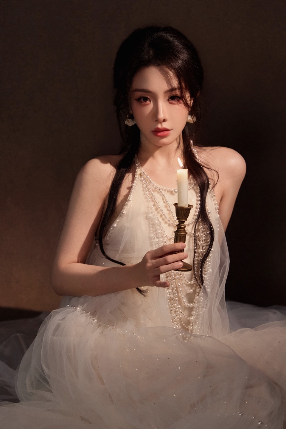 于文文黑裙垂落似银河倾泻