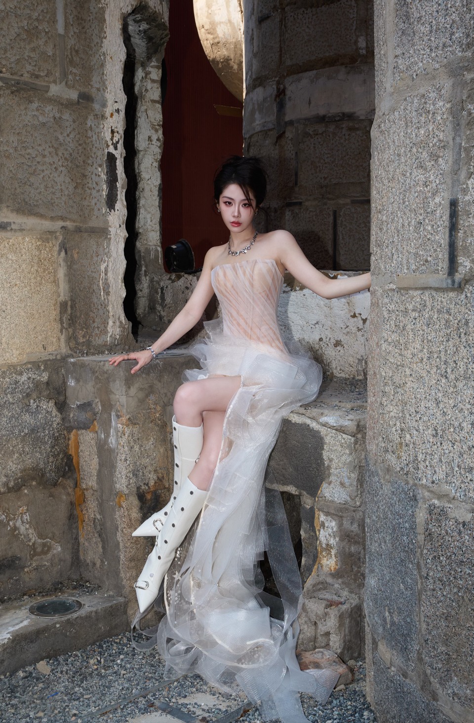 朱珠珠光点缀长裙摩登绽放
