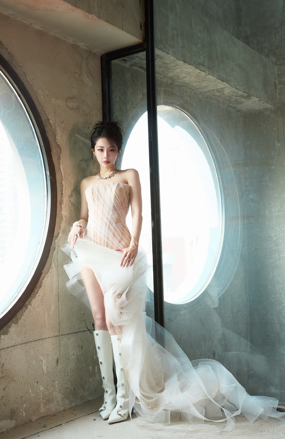 杨紫轻柔的纱复刻花瓣的脉络