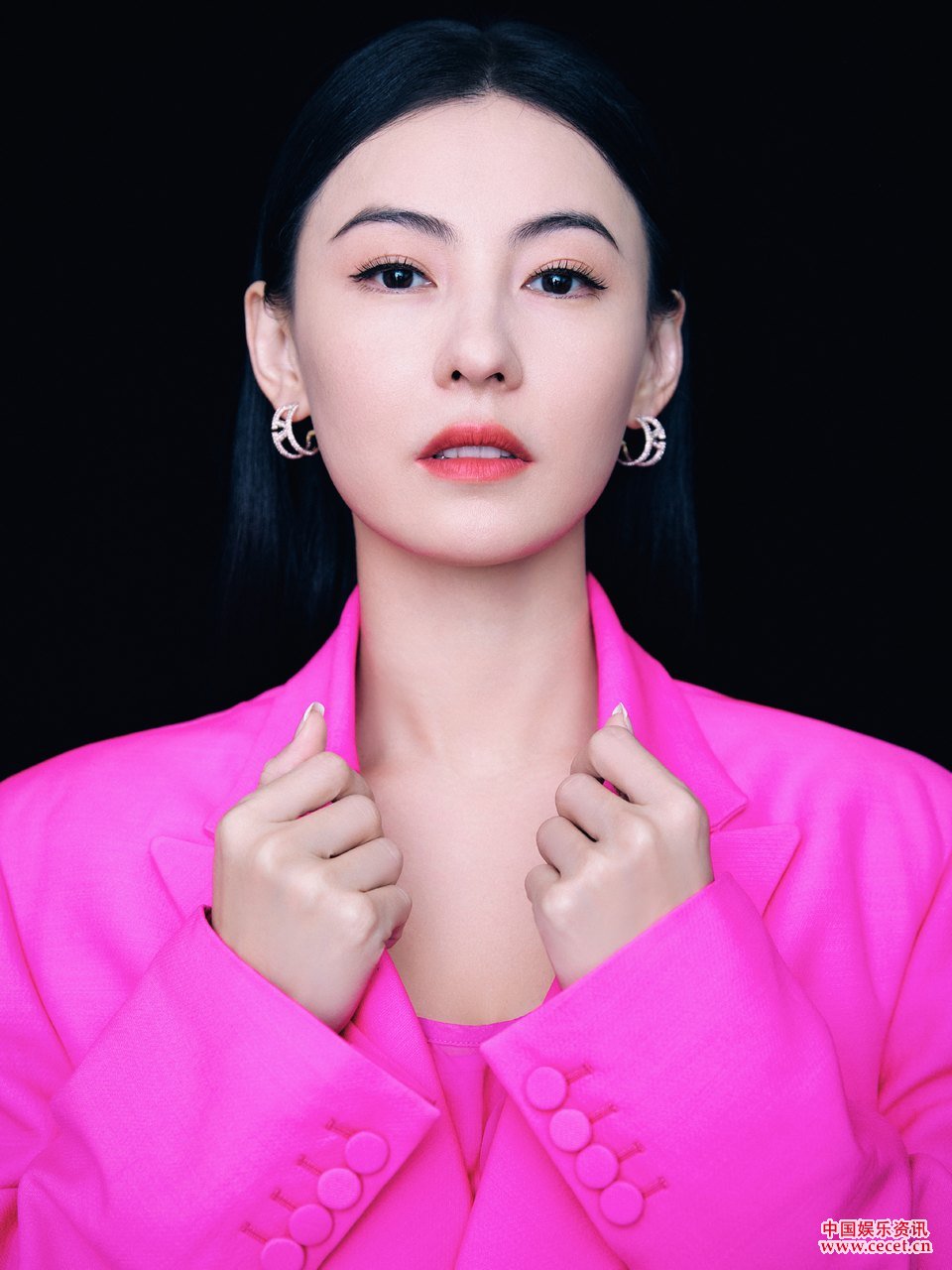 张柏芝玫红色套装于靓丽色彩中释放惬意气息