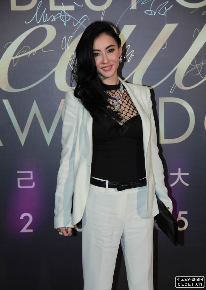 张柏芝出席时尚盛典 西装外套和网眼内搭