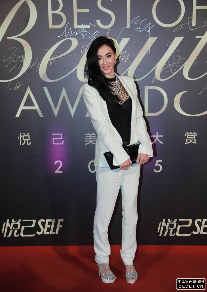 张柏芝出席时尚盛典 西装外套和网眼内搭