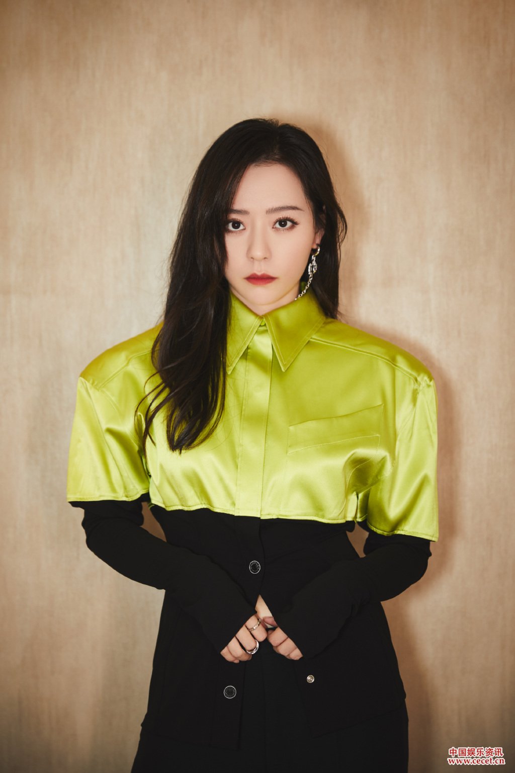 张靓颖果绿色上衣搭配黑色长筒裤青春又时尚