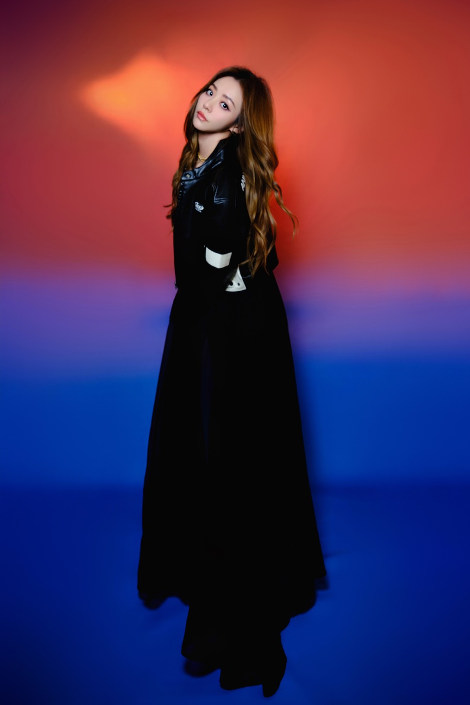 白色外套蓝裙美女修长