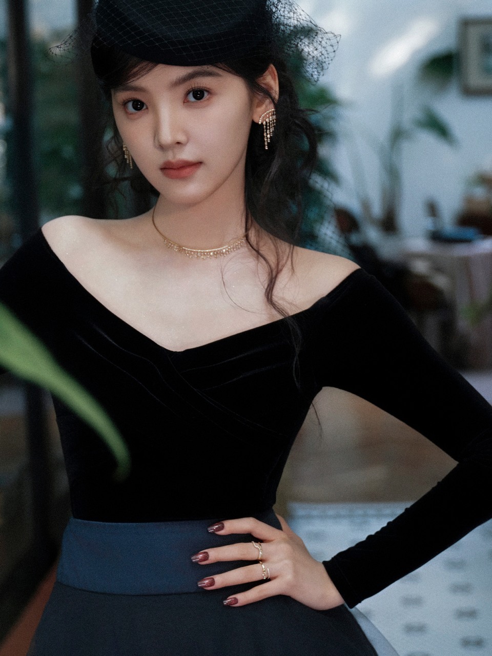 章若楠黑色纱裙温婉优雅 珠光熠动绽放矜贵绮梦