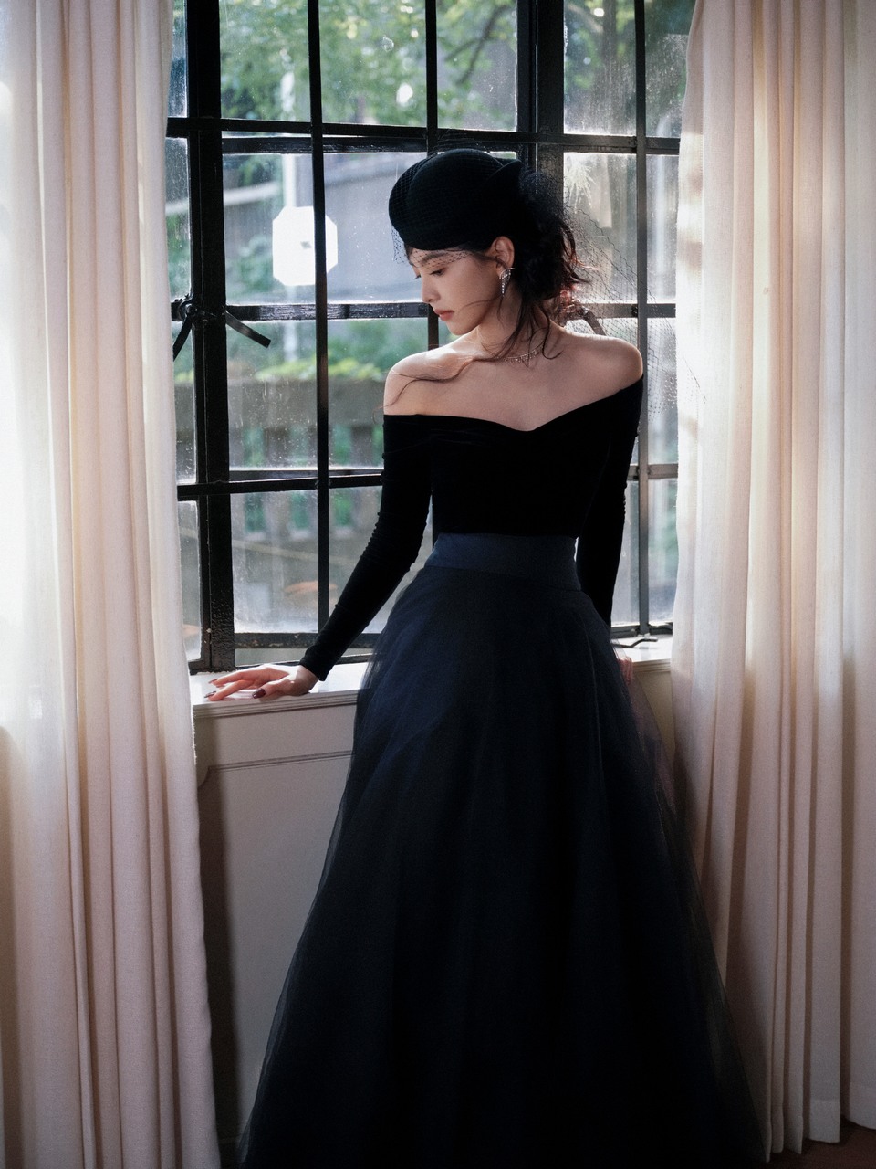 章若楠黑色纱裙温婉优雅 珠光熠动绽放矜贵绮梦