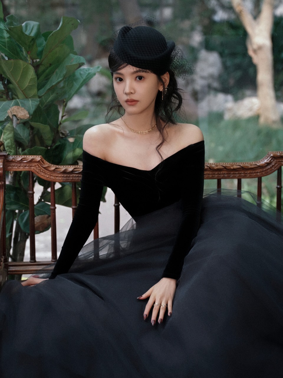 章若楠黑色纱裙温婉优雅 珠光熠动绽放矜贵绮梦