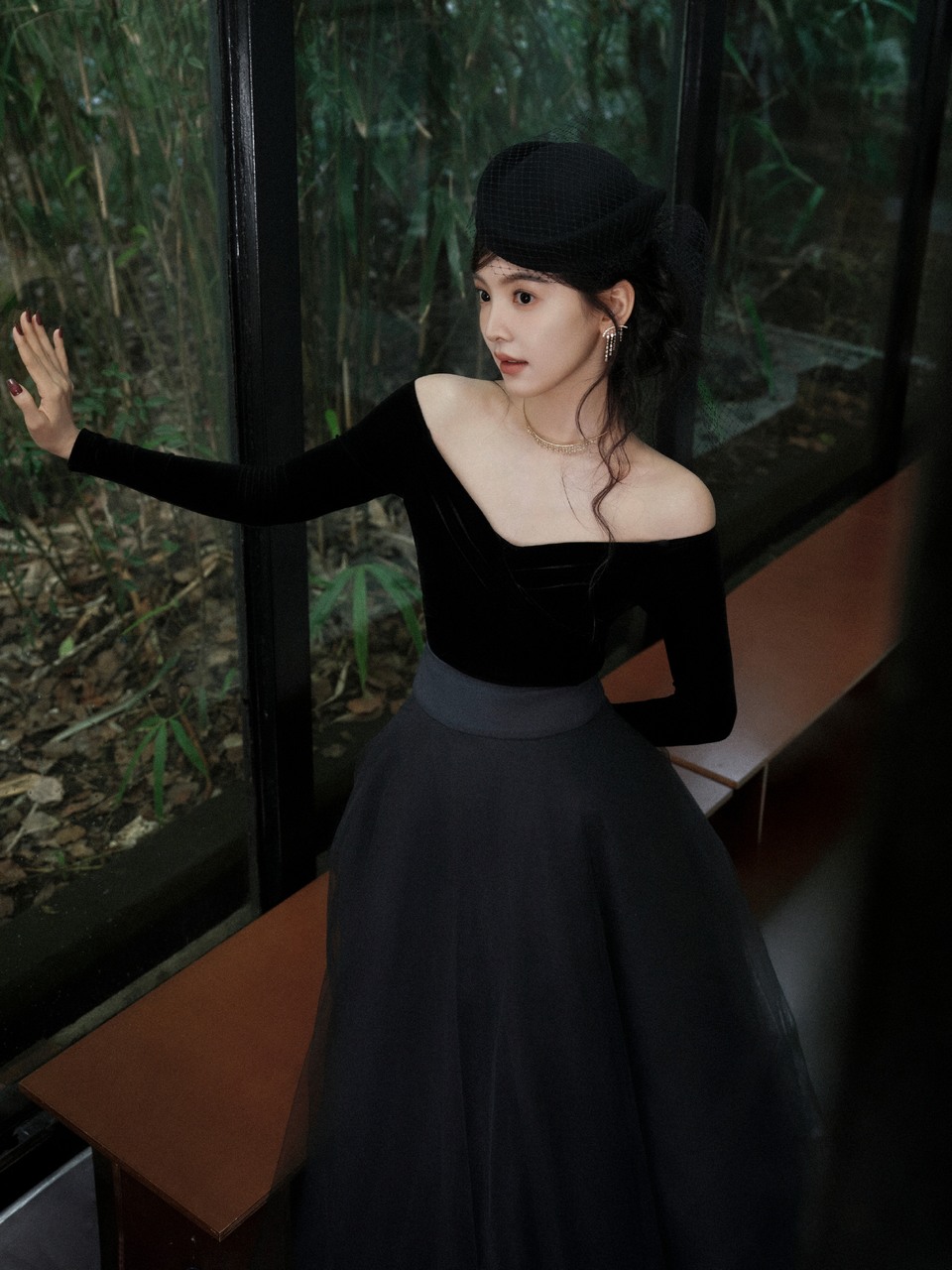章若楠黑色纱裙温婉优雅 珠光熠动绽放矜贵绮梦