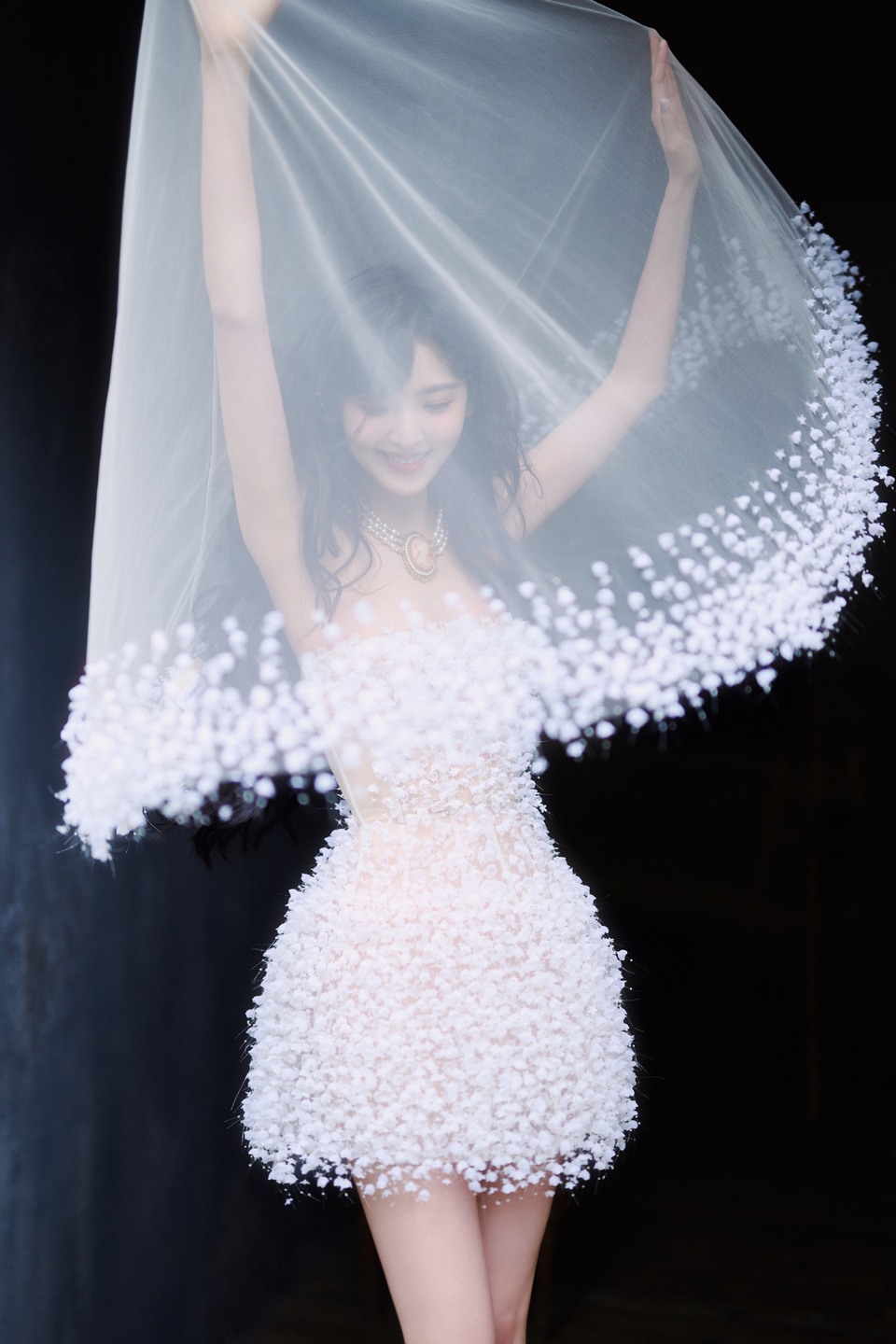 章若楠纯白裙摆轻轻扫过 薄纱似雾光笼罩轻盈梦幻