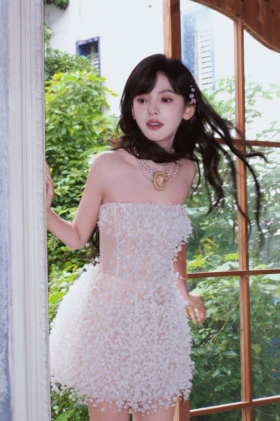 章若楠纯白裙摆轻轻扫过 薄纱似雾光笼罩轻盈梦幻