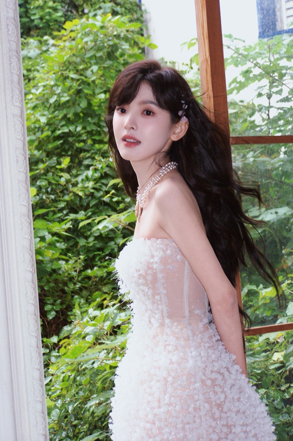 章若楠纯白裙摆轻轻扫过 薄纱似雾光笼罩轻盈梦幻