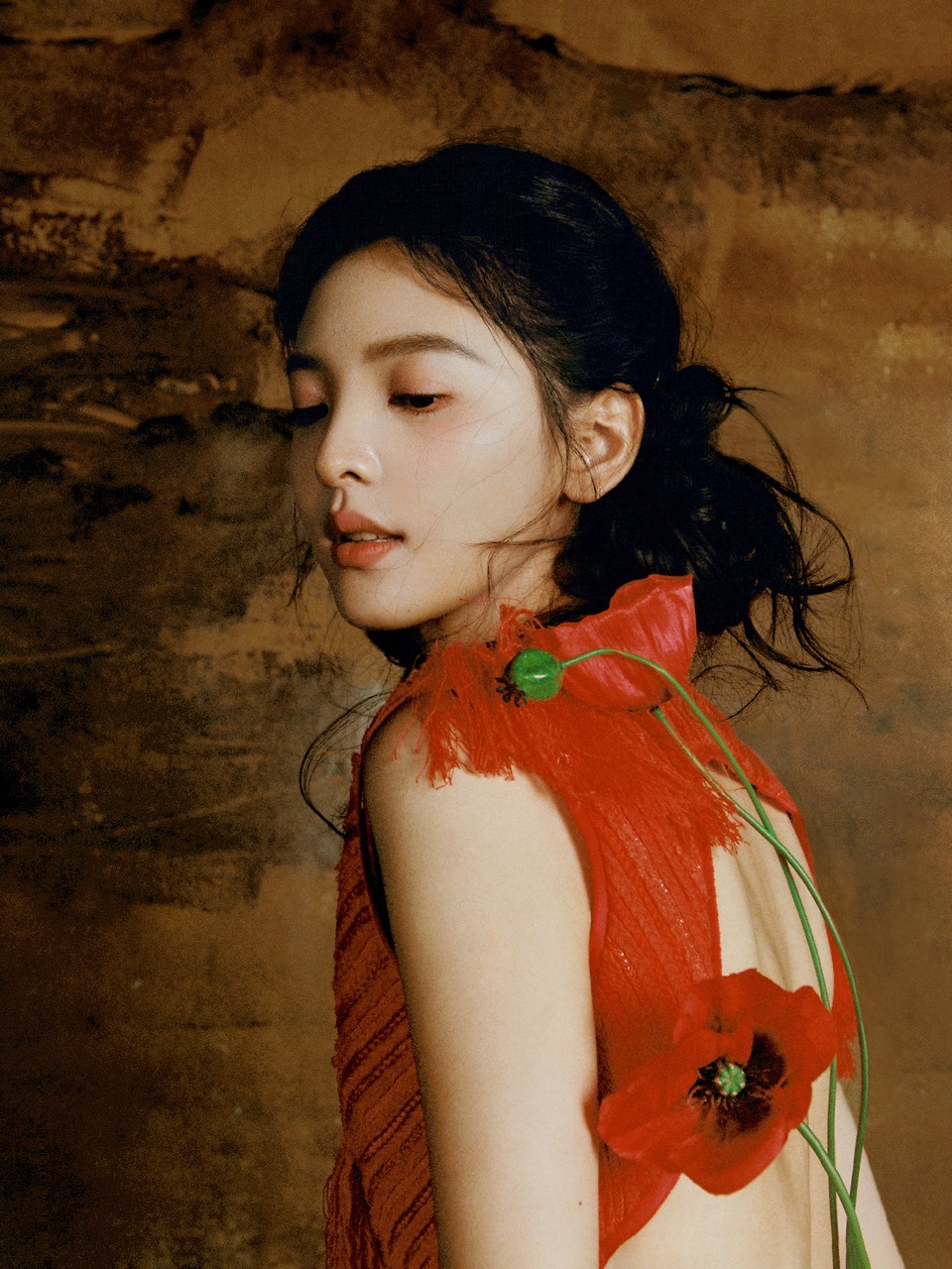 章若楠花朵簇拥之下 油画浓墨鲜丽最明媚的一瞬