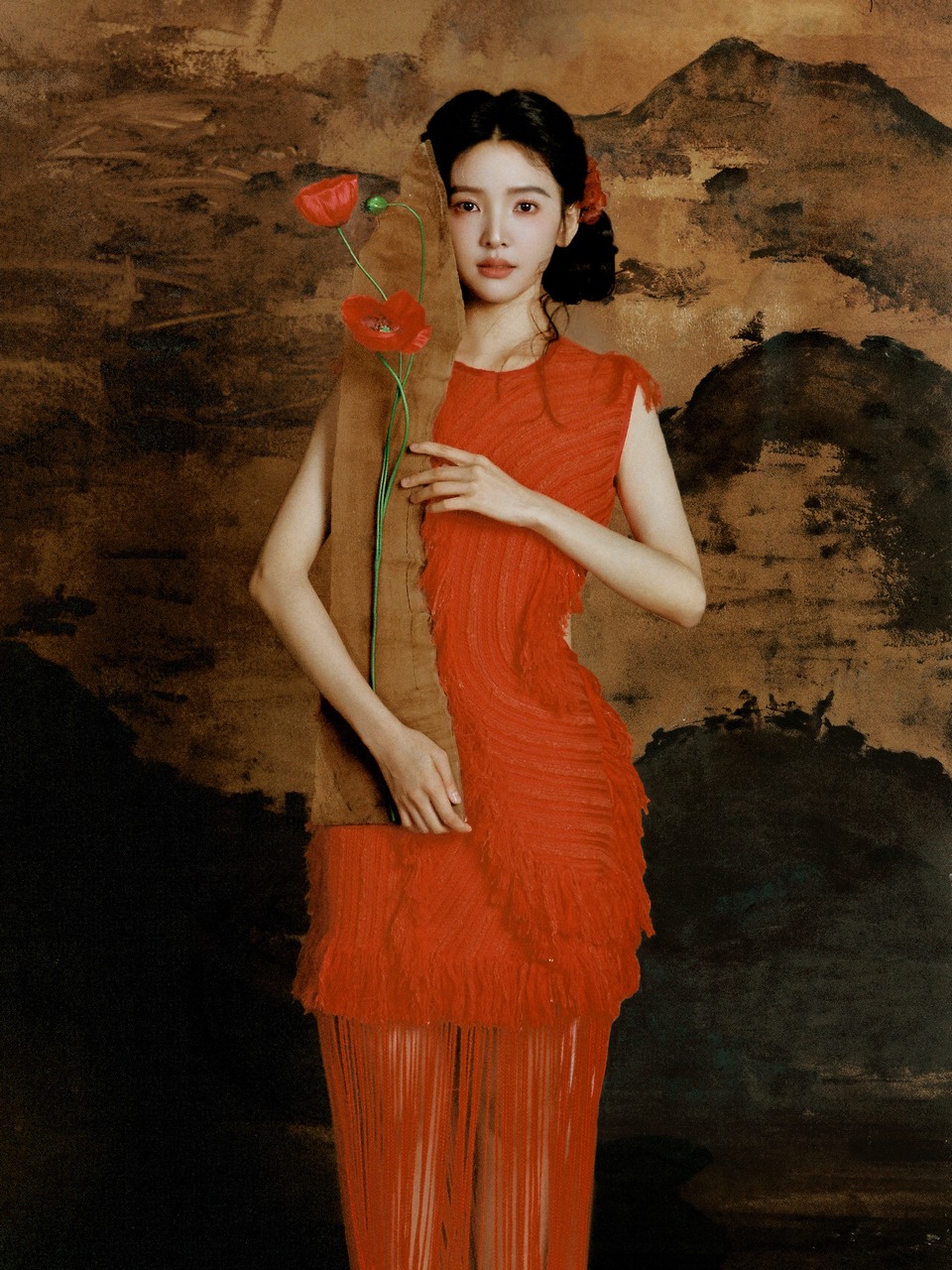 章若楠花朵簇拥之下 油画浓墨鲜丽最明媚的一瞬