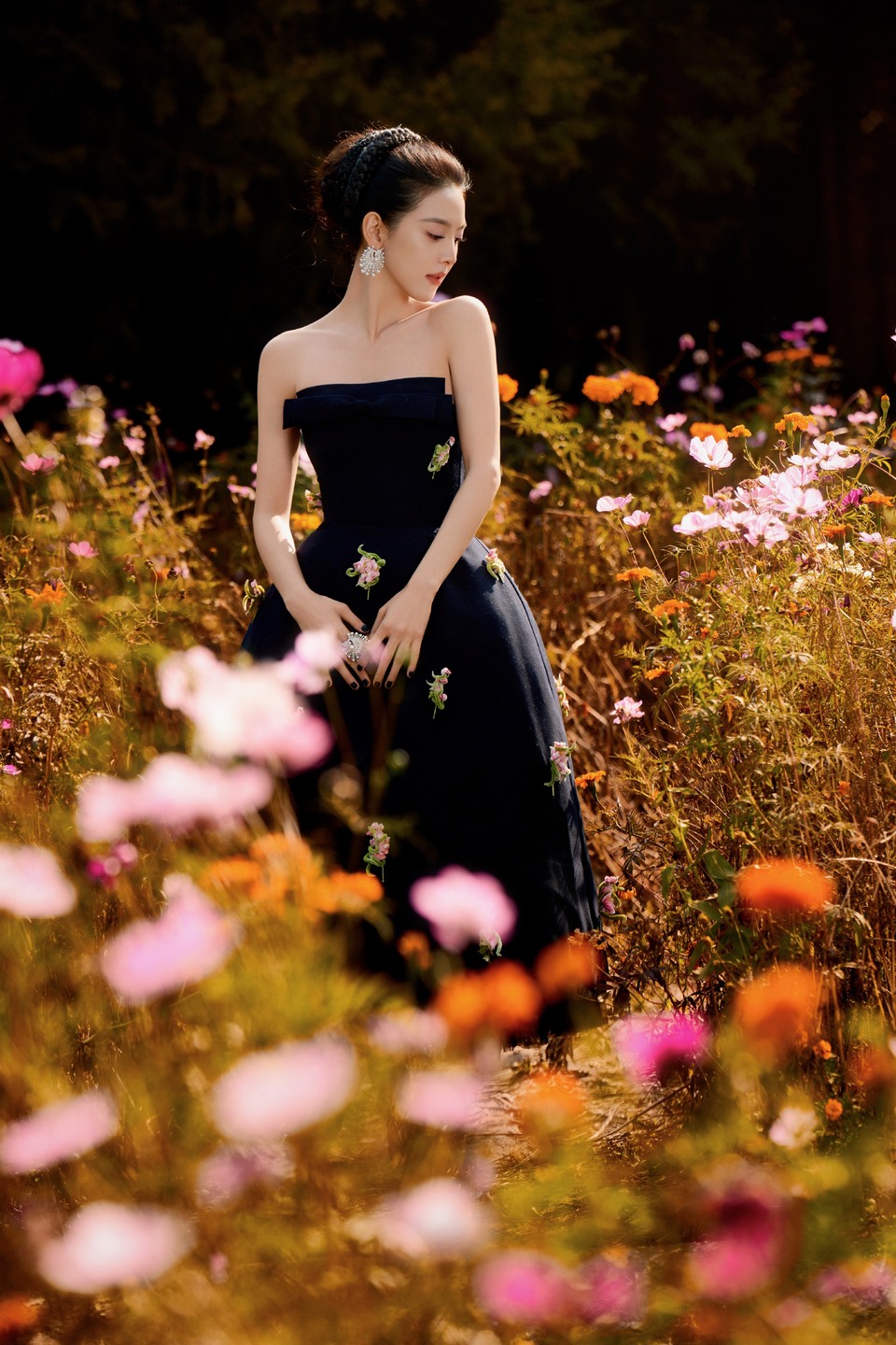章若楠阳光洒落漫步花间 闻花香尽情在花中绽放