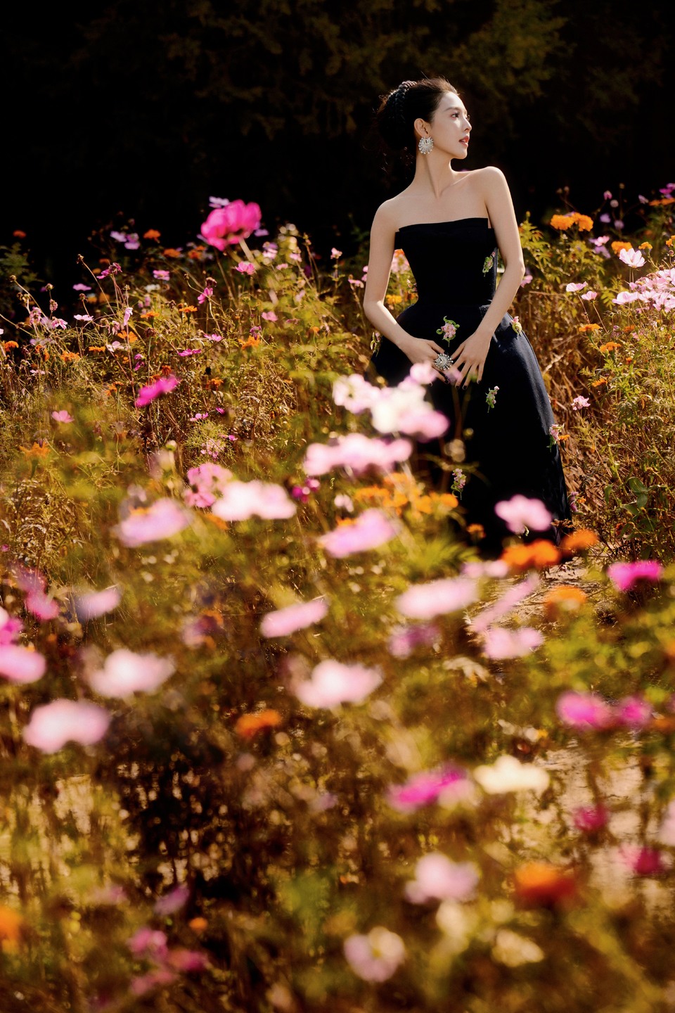 章若楠阳光洒落漫步花间 闻花香尽情在花中绽放
