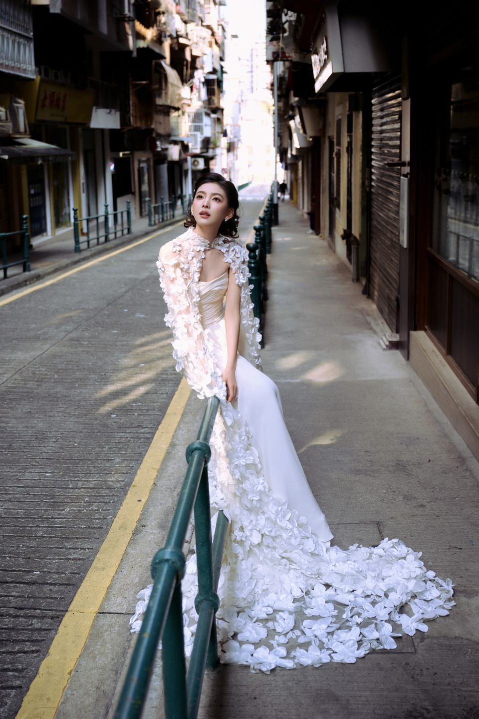 章若楠街巷回眸纯白明媚 微风裹着细碎暖意漫过肩头