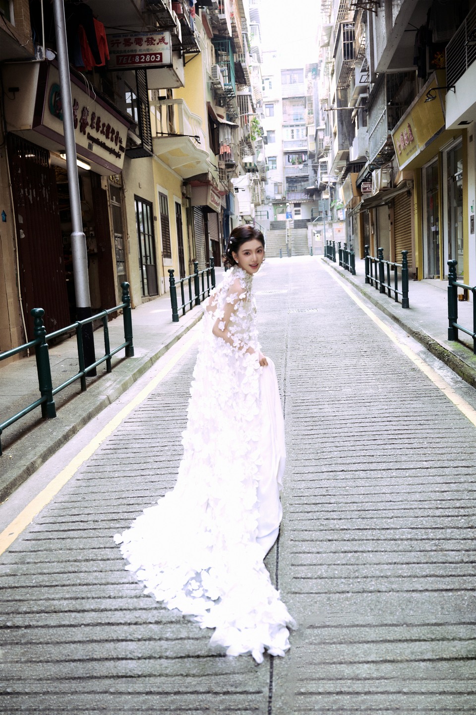章若楠街巷回眸纯白明媚 微风裹着细碎暖意漫过肩头