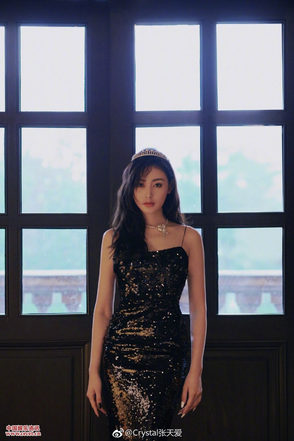 张天爱亮片吊带裙美照 蜂腰翘臀画面超养眼