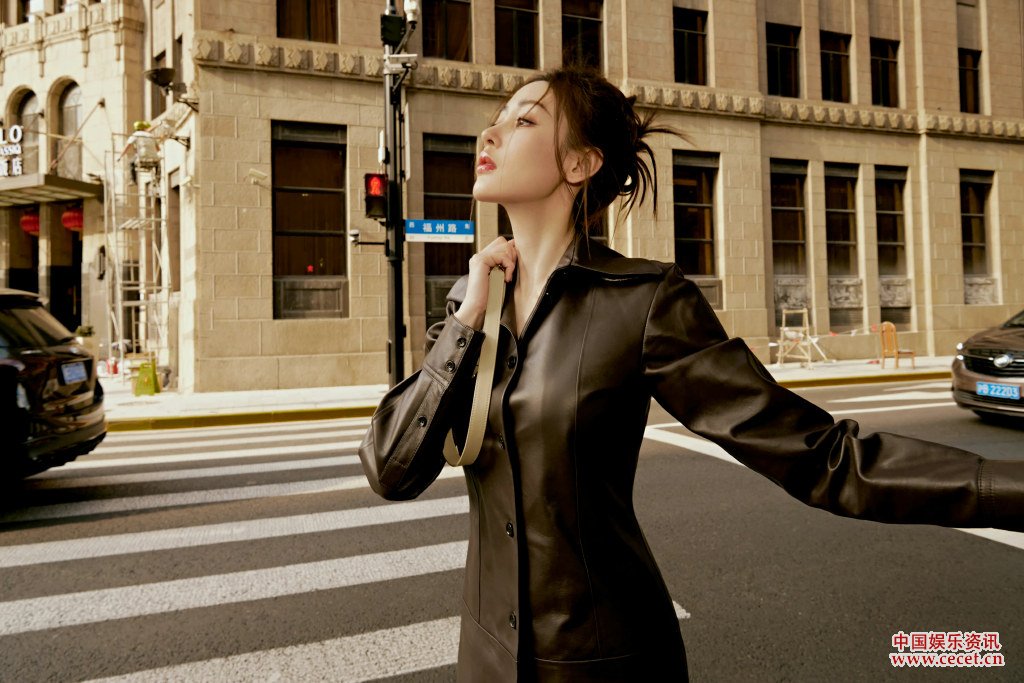 张天爱皮衣利落率性 城市之下诠释自我新态度