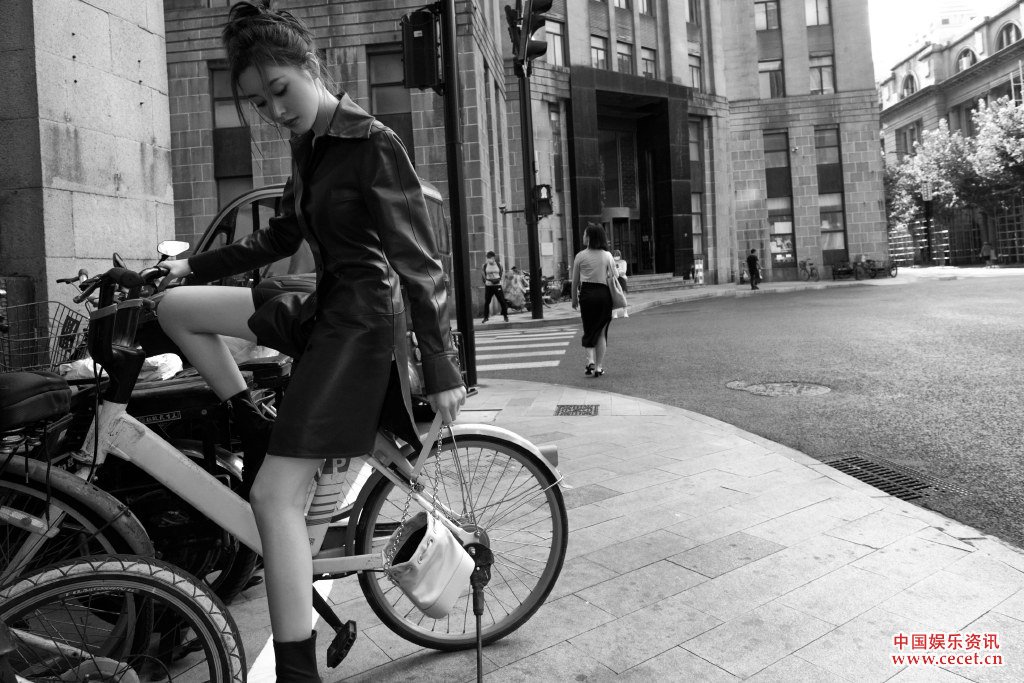 张天爱皮衣利落率性 城市之下诠释自我新态度